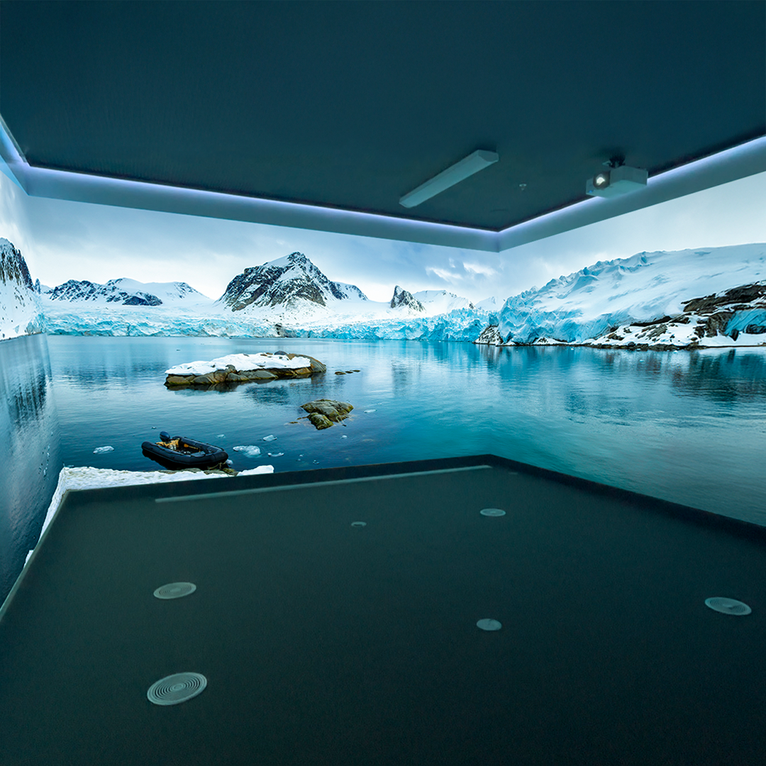 Large format stitched projection enables users to be fully immersed into real world and virtual environments. Using Ultra HD projection hardware across multiple surfaces, including walls and floors, we create an experiential learning space, which engages and inspires learners of all abilities.